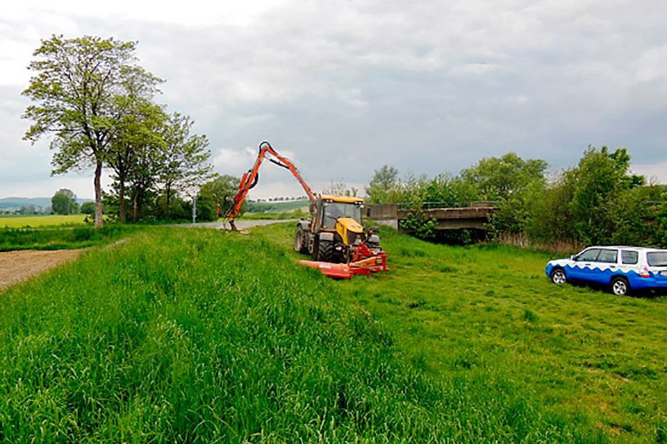 - Mäharbeiten am Uferrand, damit Hochwasser besser abfließen kann